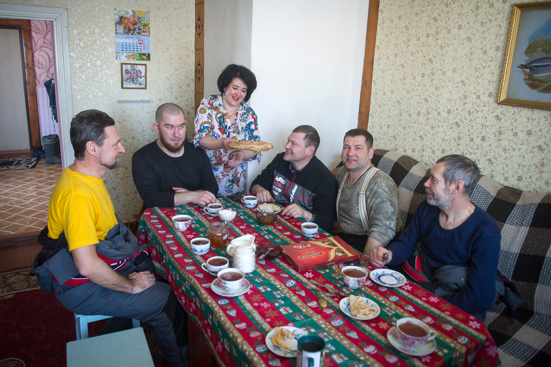 That day we woke up even earlier than necessary. Having crossed the river Mezen, we got to Kamenka. Hospitable locals who are great fans of off-road vehicles offered us pancakes with cloudberry jam for breakfast . Then we made a trip to the village of Dolgoshchelye, about 35 kilometers away. The village is really beautiful, its streets with real northern houses are amazing (just like the museum in Malye Korely, but real-life and better), and in order to feel the whole charm of the northern way of life deeply, of course, it is better to stay here longer. We took some photos and went back to Kamenka.