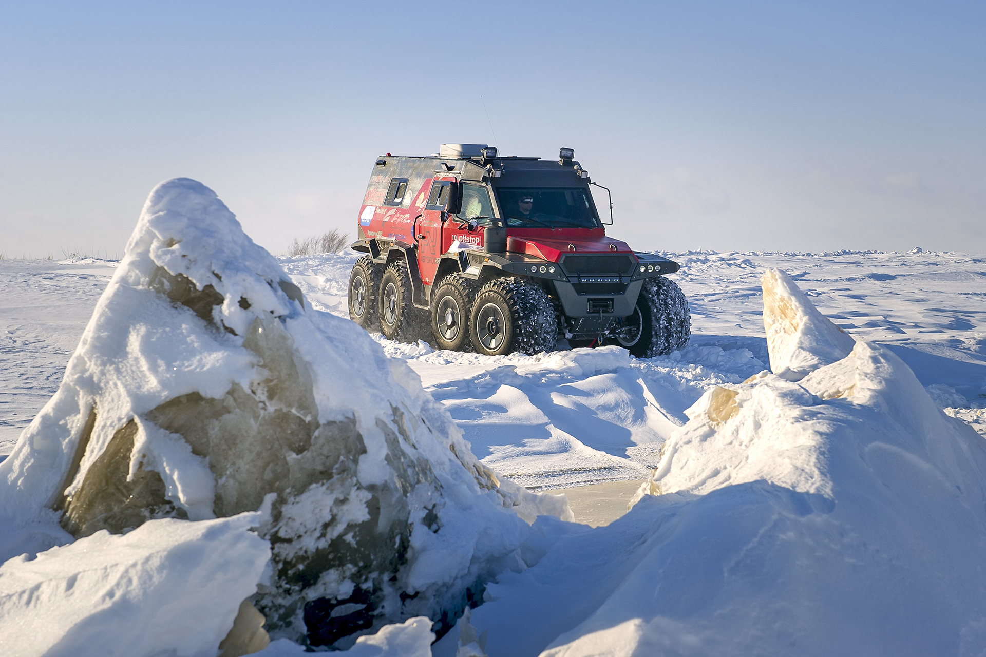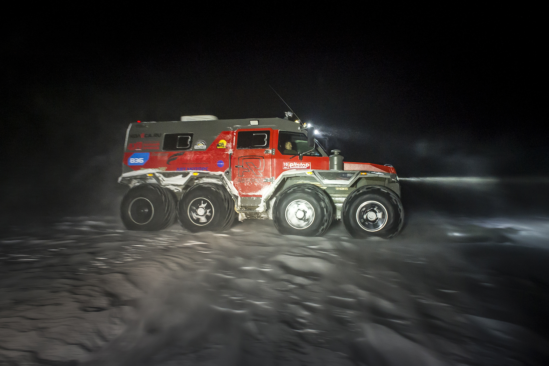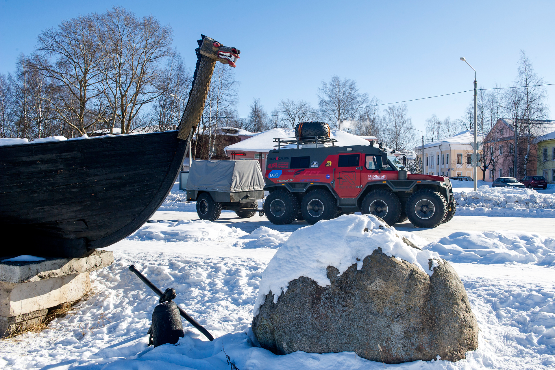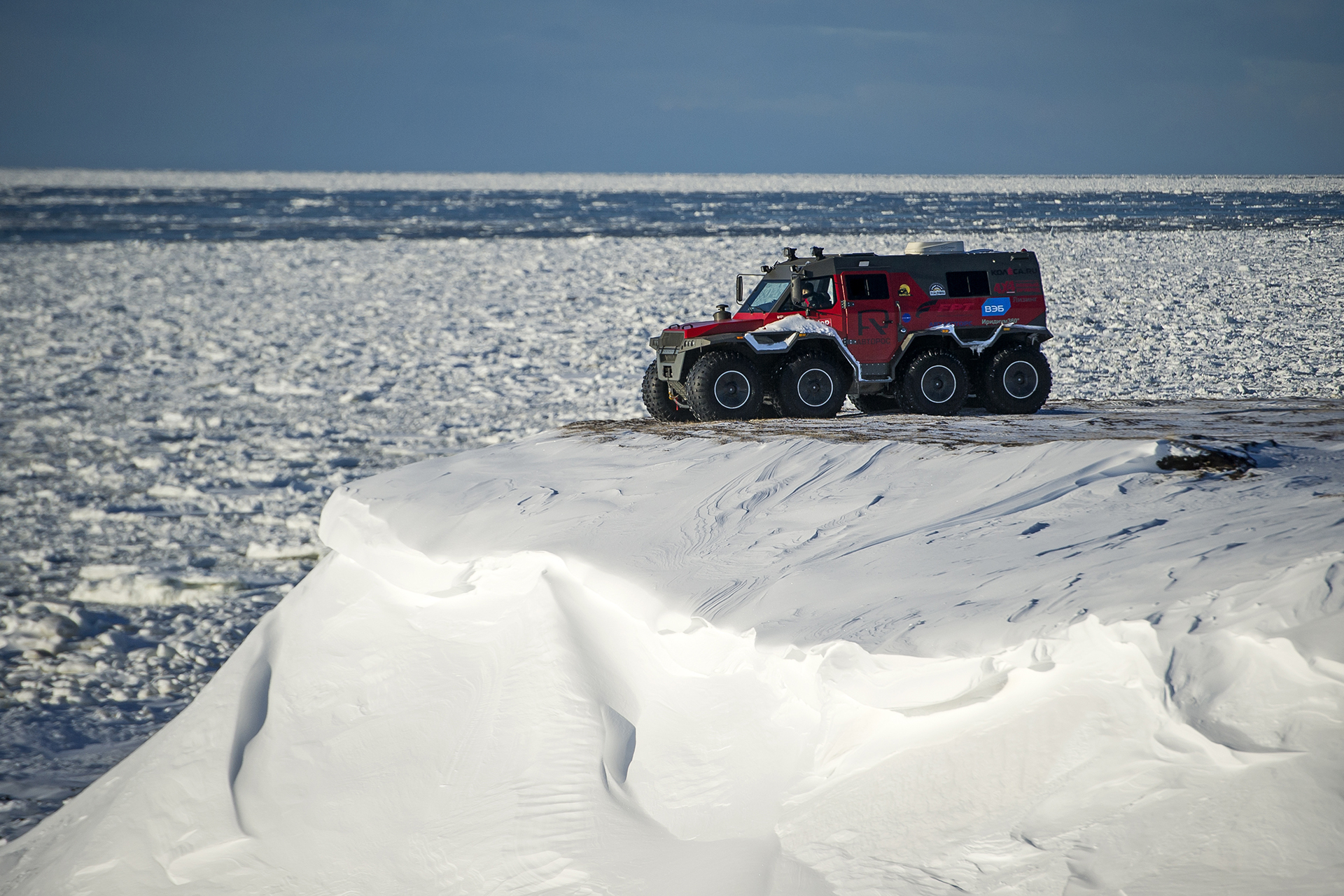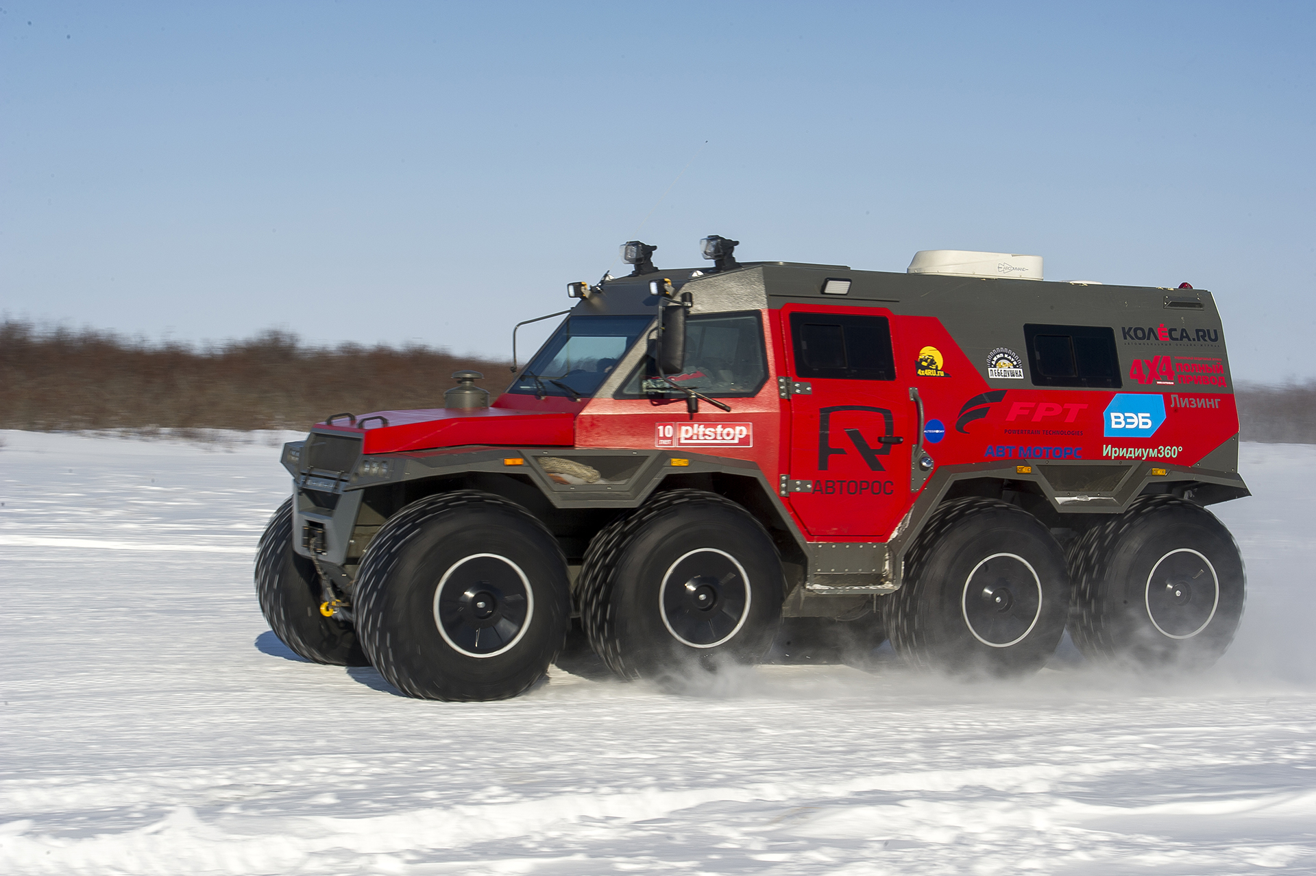 The first hundred kilometers we traveled in a strong snowstorm, snow swept the road and covered the windshield, the wipers were freezing, but after Bezhetsk the weather improved. In Vologda Region, the roads were covered with ice, but all-terrain vehicles rode along them quite confidently, thanks to the the weight of the cars and the number of wheels. The motorcade was headed by Pavlov’s “tadpole”, followed by a crew of mechanics, and a crew of journalists closed a small motorcade. We were driving together, although not fast: cruising speed was about 55-60 km /h. There were still more than 1,000 km ahead - the expedition was still at the very beginning.