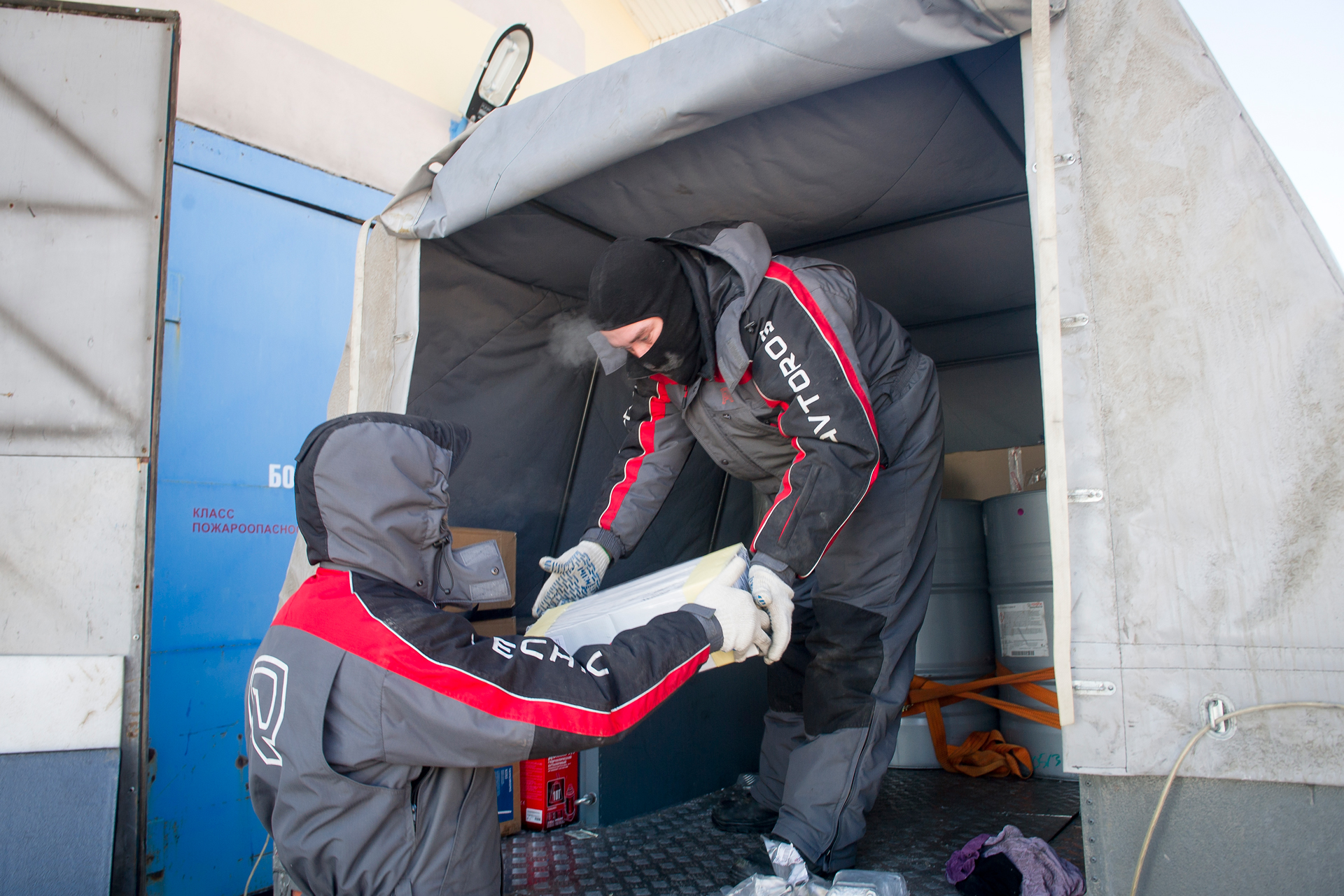 Lunch on the go, which helps save time, is becoming a habit. The crew of the white Shaman moves to the red one, only Andrey - the drever of the white one - stays. We are having a conversation during the meal. Everything is really comfortable, like on a boat, but only when the road is smooth. The kitchen is equipped with two crock-pots, placed in two special sockets. Back on the road again after a good meal.