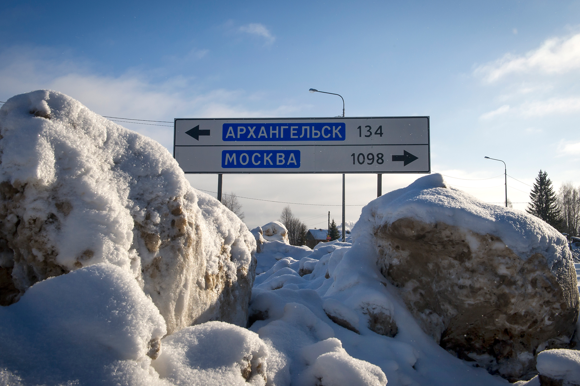 We spent the night in a roadside parking somewhere outside Plesetsk, 200 kilometers were left to Arkhangelsk. The weather was excellent . The road was bare ice over asphalt.