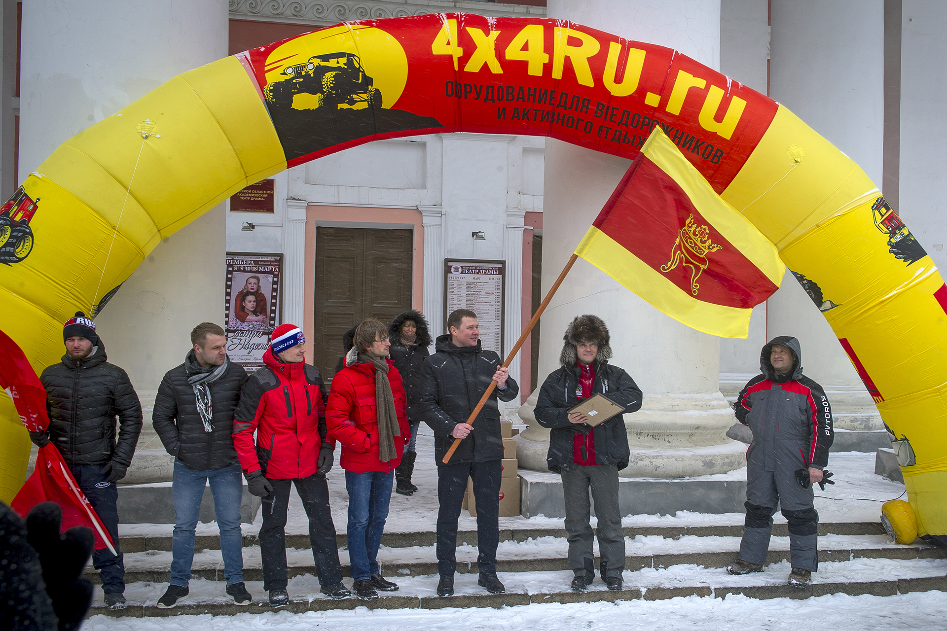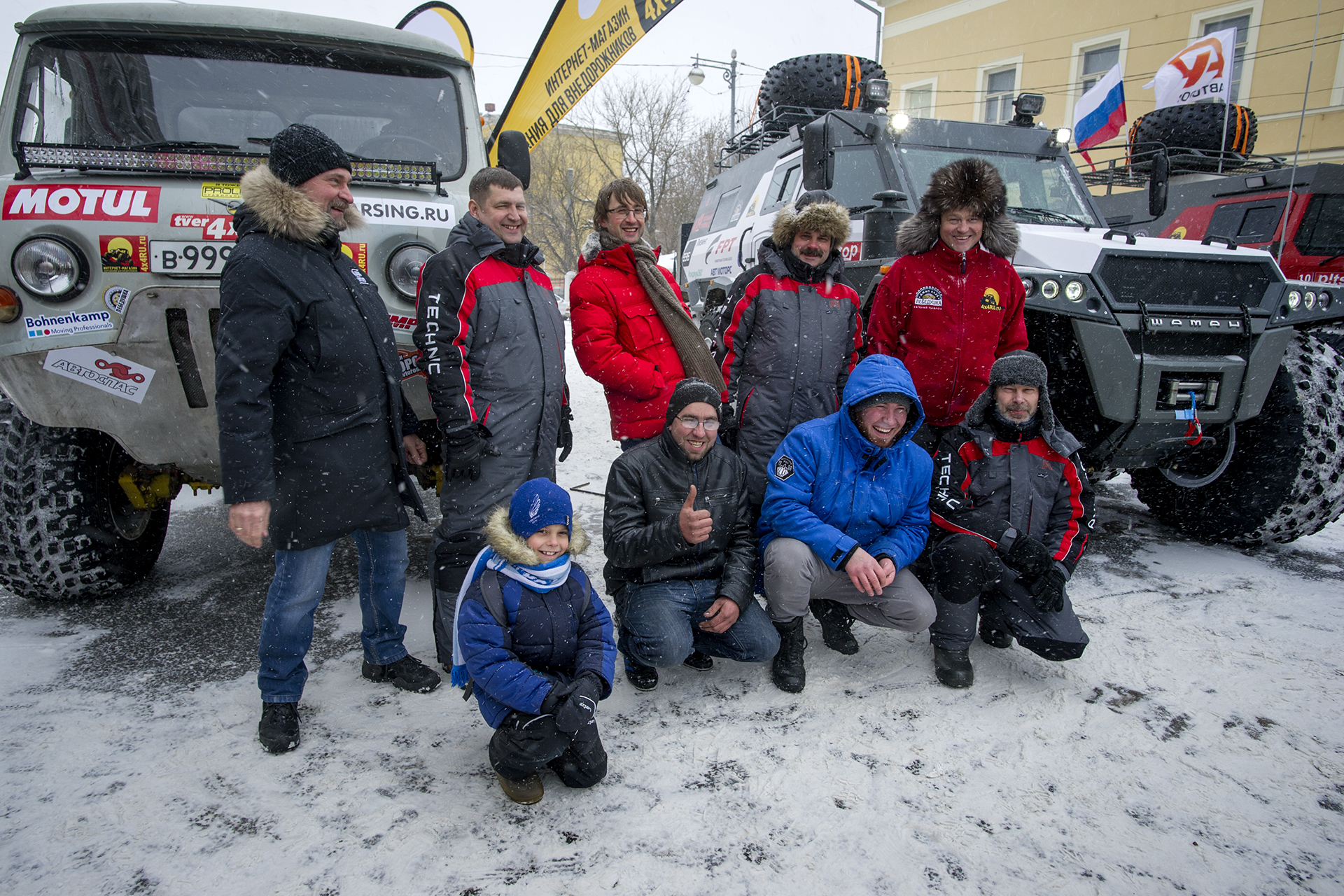The official ceremony of starting the expedition “North with no Barriers” took place in Tver. The expedition was organized by “AVTOROS” company and the jeep club “Lebedushka”.. The head of the expedition - Yevgeny Pavlov. Surprisingly a lot of people came to see the vehicles and wish the members of the expedition good luck. Men wanted to know the details of the vehicle design, children and women with curiosity examined the salons of expeditionary all-terrain vehicles.
