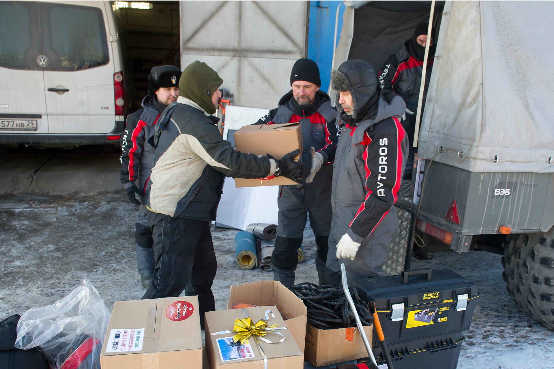 The expedition team came back home. We returned back through Arkhangelsk. Estimated arrival date was March 28th. The red SHAMAN returned to Tver on its own wheels. Evgeny Pavlov sent his 6x6 quad bike back with a transport company in Ukhta.