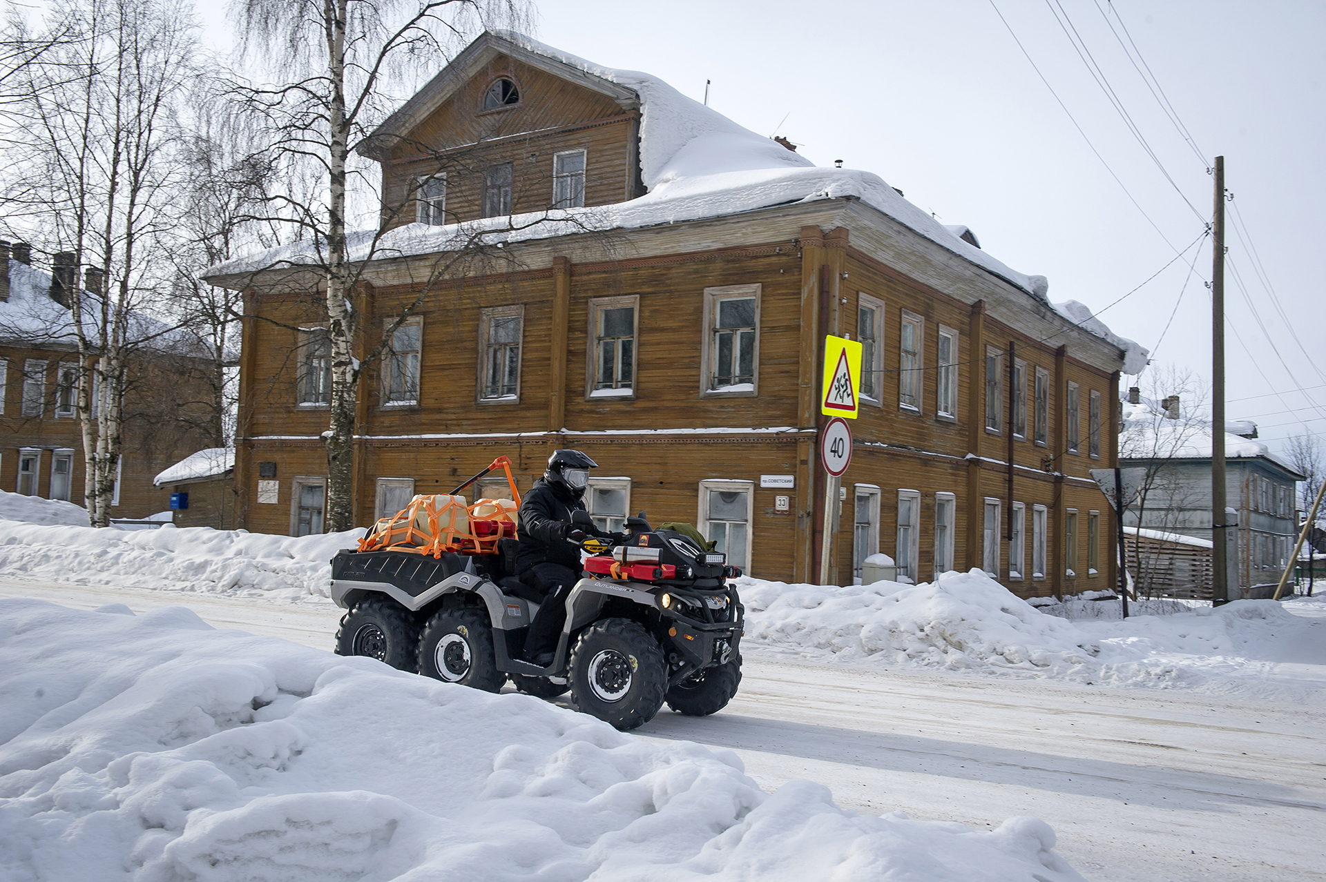 Our expedition had a short delay near Arkhangelsk. We purchased some more groceries, fresh vegetables and gifts. The red SHAMAN returned from Arkhangelsk, where he went to the gas station for refueling, and also filled two 200-liter barrels of gasoline - for Yevgeny Pavlov’s quad bike . Finally, the “Red One” came back and they hurriedly set off.