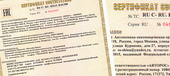 Мы обновили сертификаты на шины низкого давления и диски "АВТОРОС".